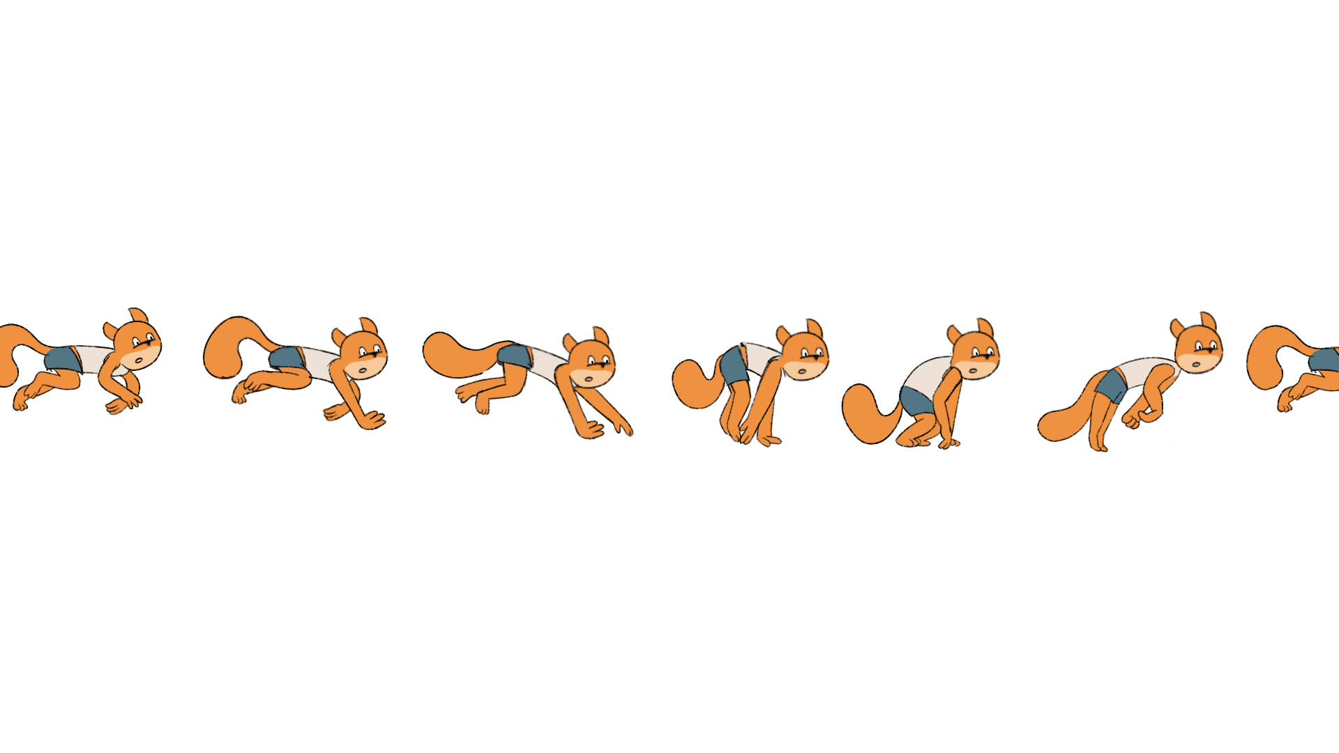 Over 12 weeks, I spend 4 weeks planning (concept, storyboard, animatic, design), 6 weeks animating (rough, clean, color/comp), and 2 weeks finishing (sound and final polish).